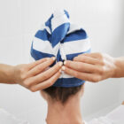 Serviettes pour cheveux à séchage rapide – Rayé bleu